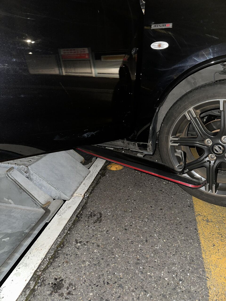 機械式の駐車場から出そうとした時に側面の出っ張りにバンパーが乗り上げた